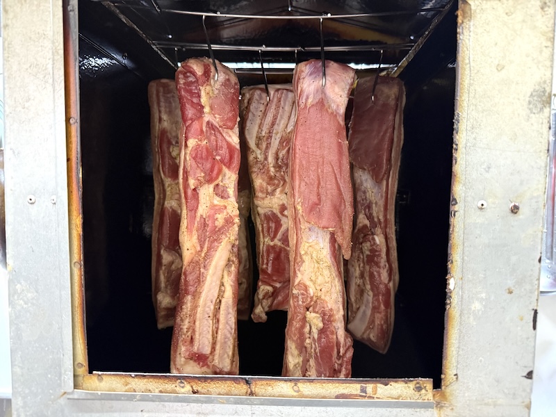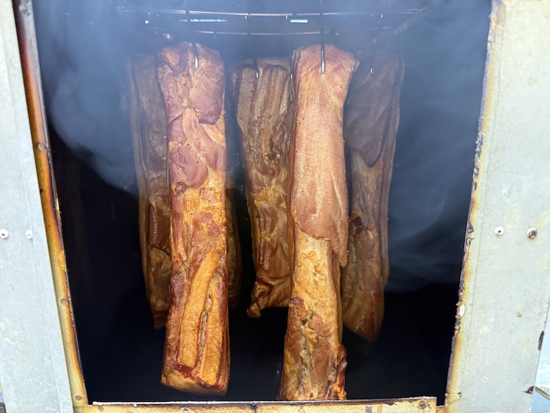自家製ベーコンの完成です。長時間スモークをかけたので、いつもよりも薫香がしっかり感じられる仕上がりになりました。