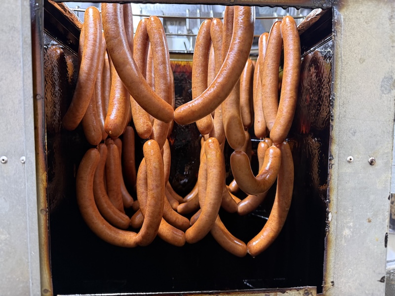 詰め終わったソーセージは、表面を乾燥させてから桜のチップでゆっくりスモーク。