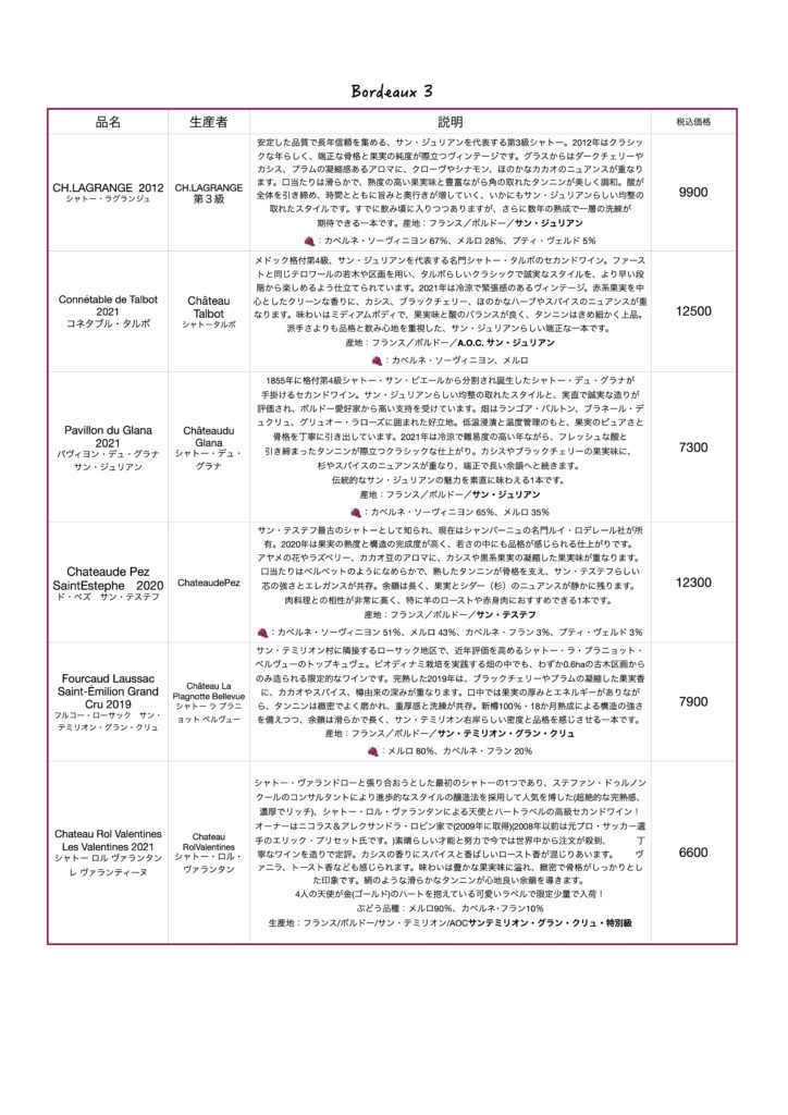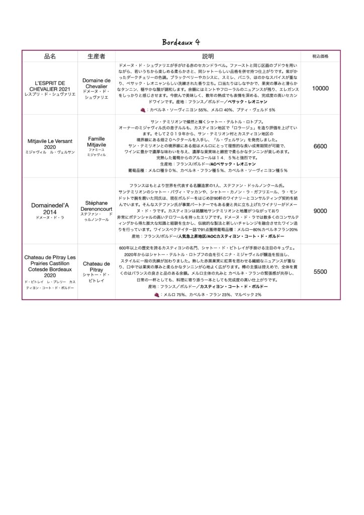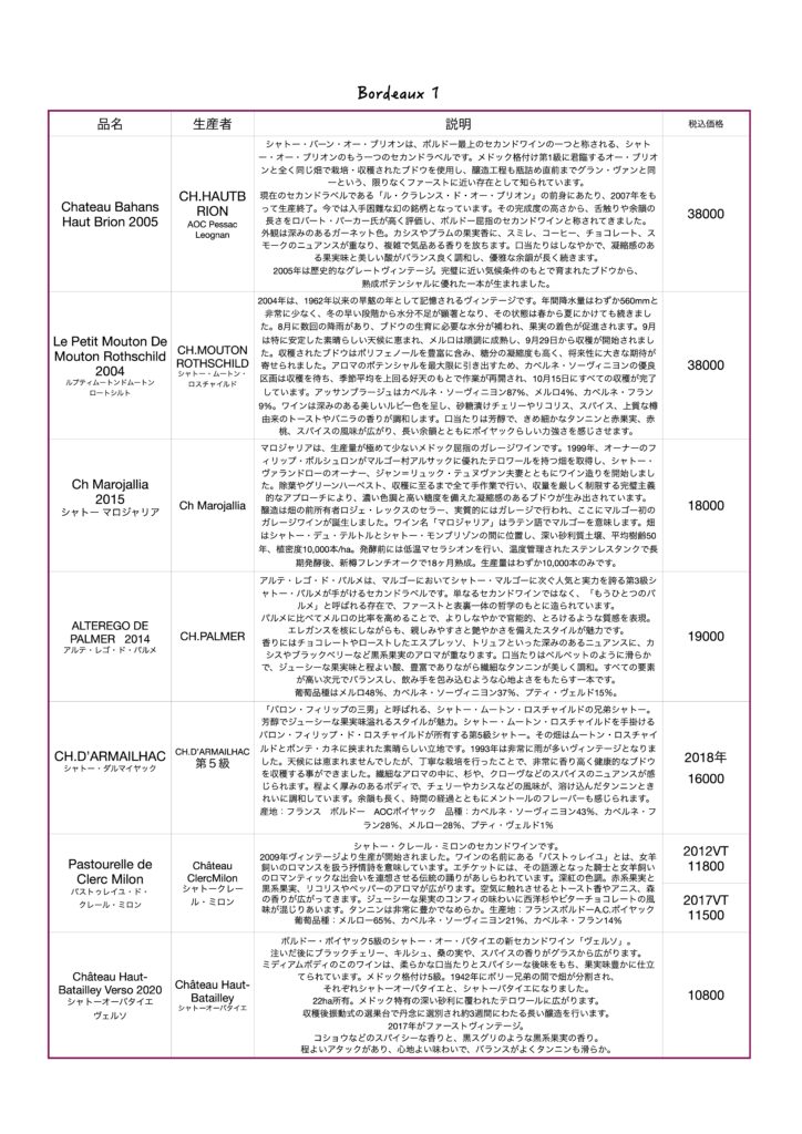 当店のワインリスト、ボルドー赤ワインになります。当店のワインリスト、ボルドー赤ワインになります。