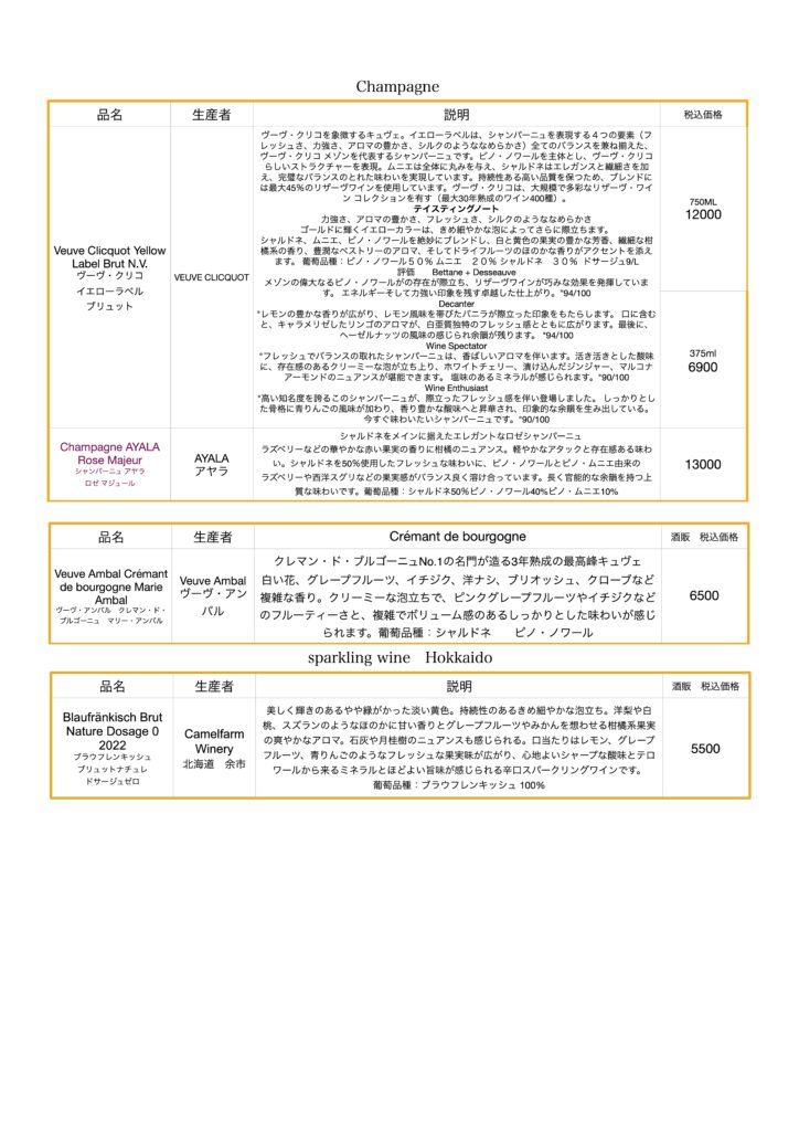 当店のワインリスト・シャンパーニュになります。当店のワインリスト・シャンパーニュになります。
