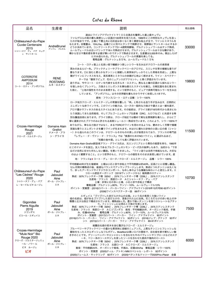 当店のワインリスト、フランスのコート・デュ・ローヌです。当店のワインリスト、フランスのコート・デュ・ローヌです。