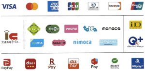 当店について 決済は様々な方法に対応致しております。 当店では、現金のほか、クレジットカード・電子マネー・QRコード決済など、各種決済方法に対応しております。 お客様のご都合に合わせて、どうぞ安心してご利用ください。 NEXT
