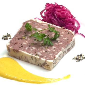 地元知床産の鹿肉で作った自家製の『田舎風パテ』です。グリーンペッパーがアクセント。